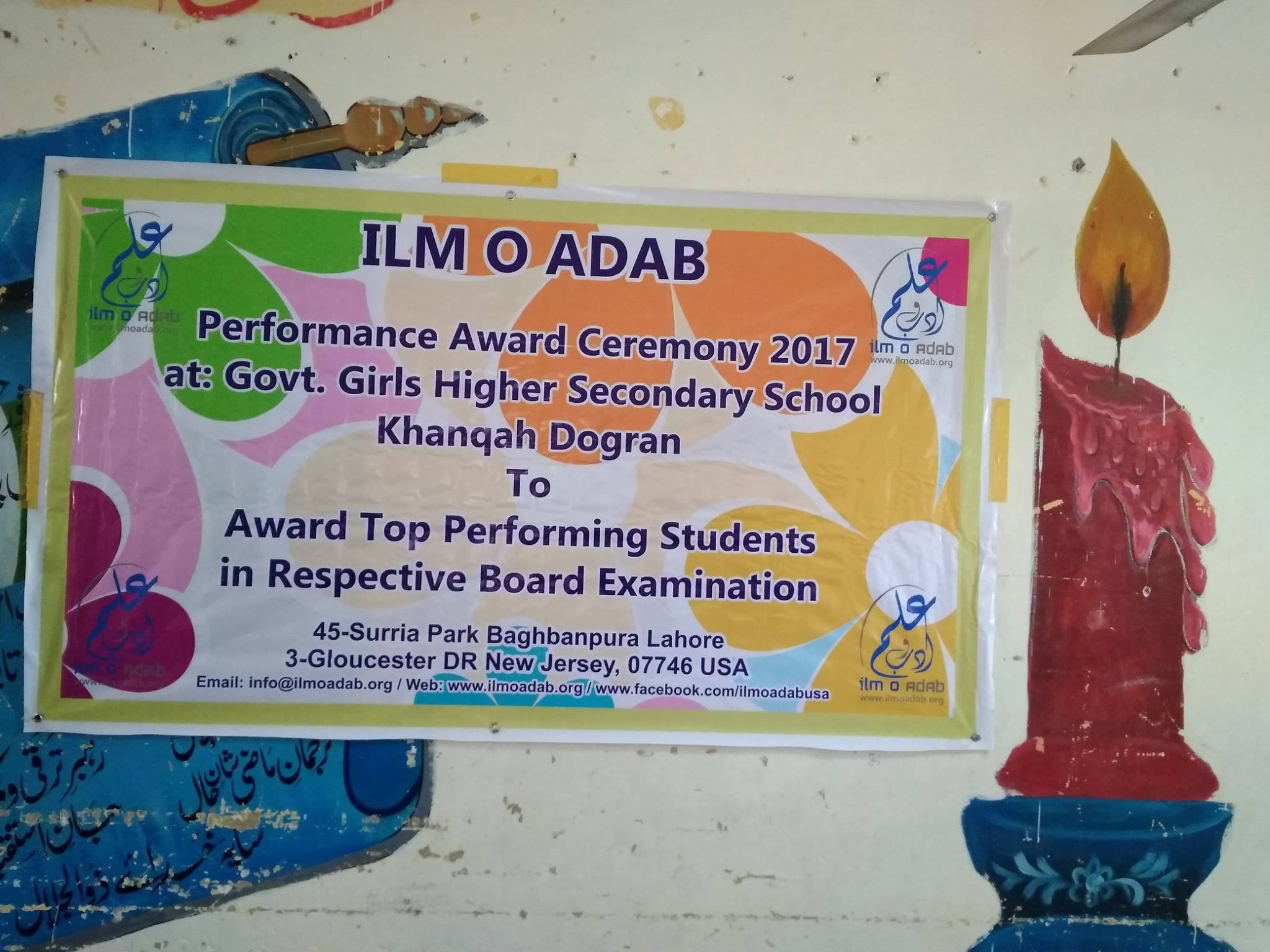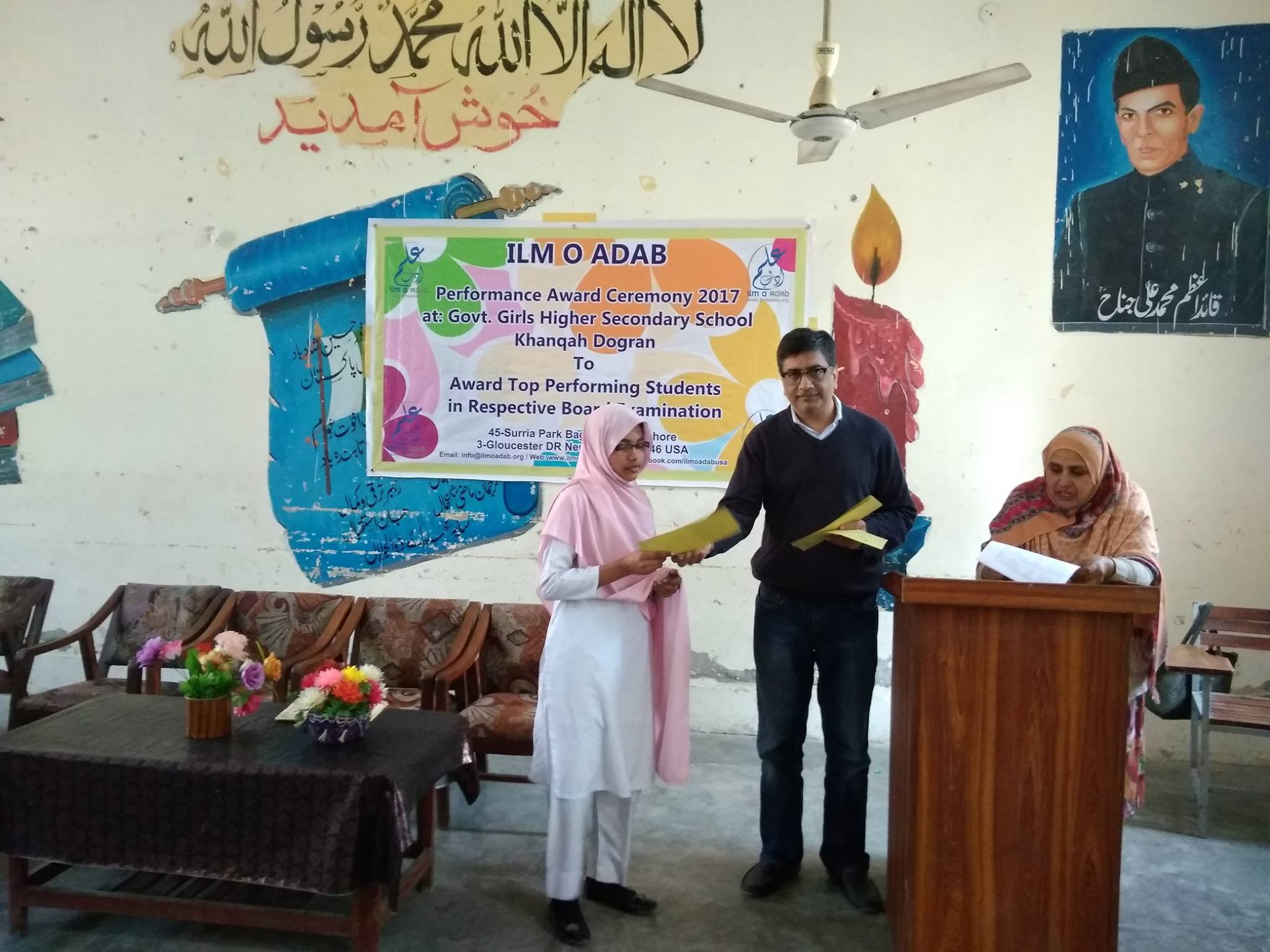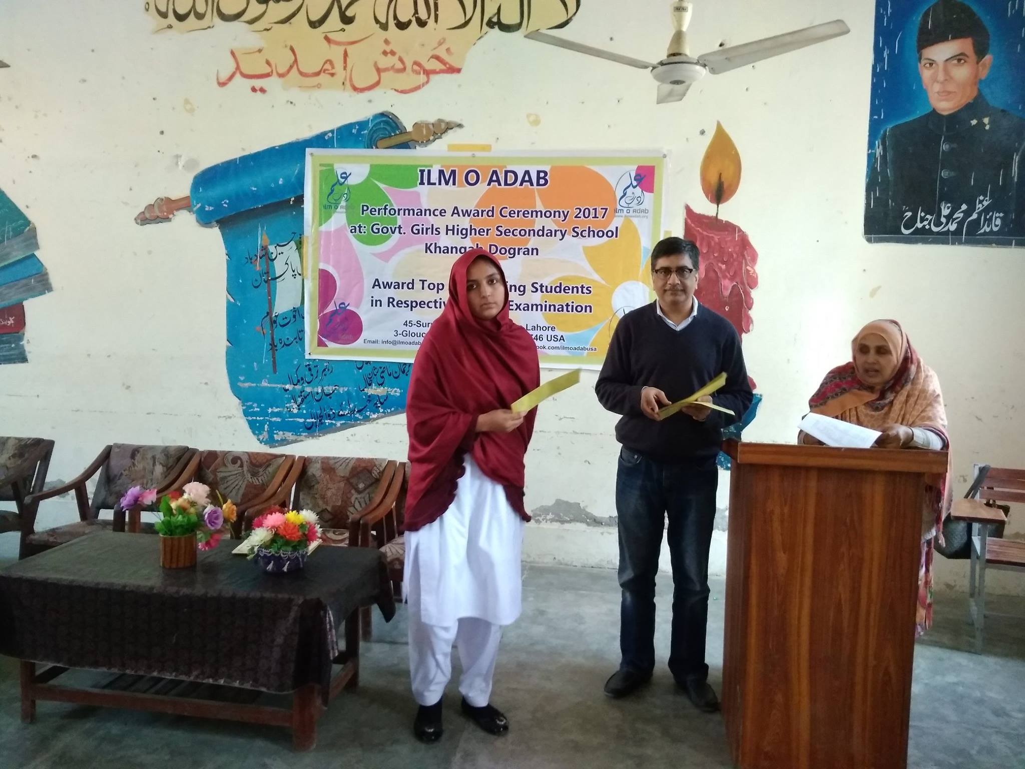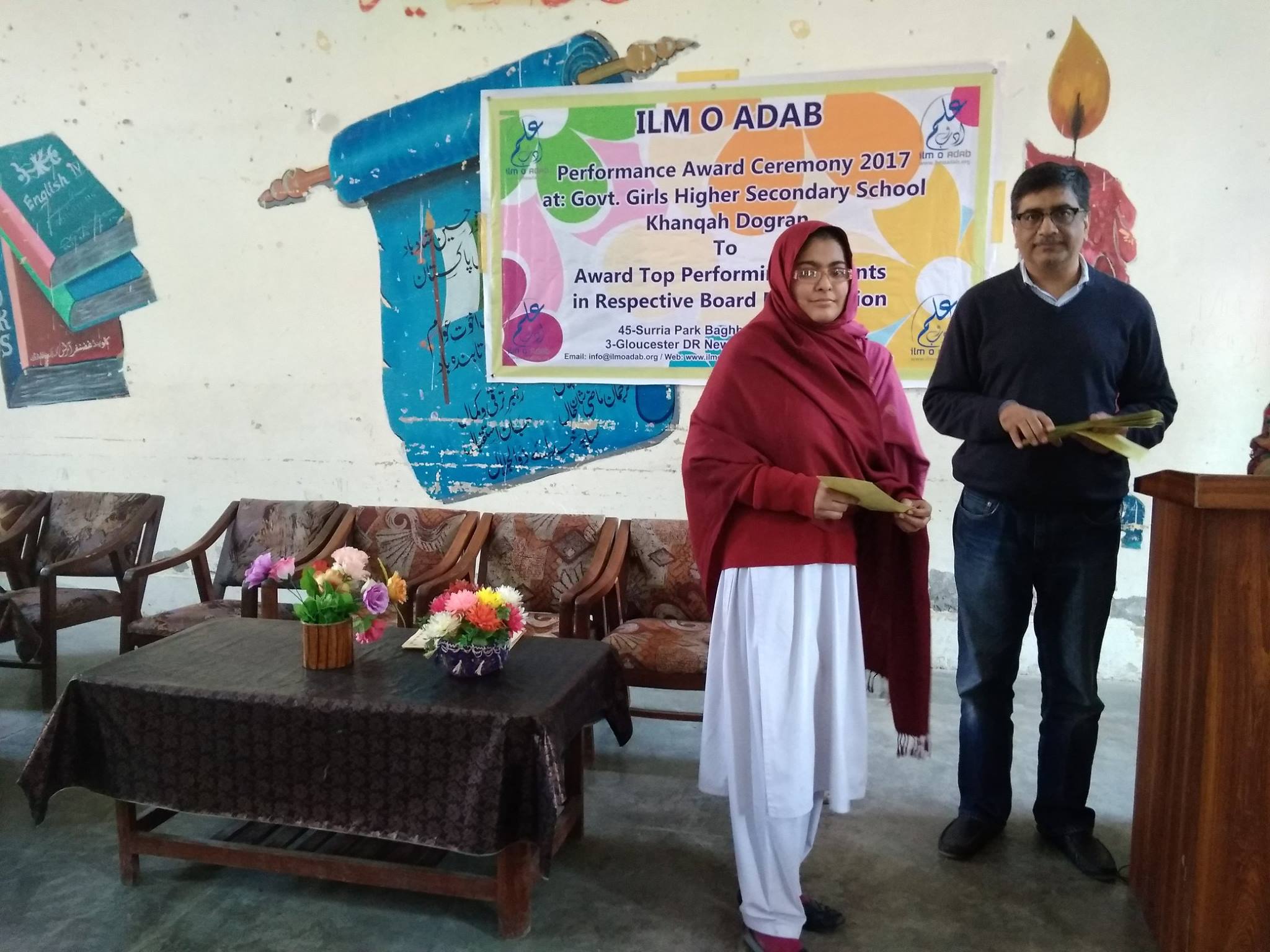 Ilm o Adab 4th Annual Performance Award ceremony 2017 held @ Govt. Girls Higher Secondary School, Khanqah Dogran,Sheikupura. Top performing students were awarded cash prizes, certificates and laureate badges.