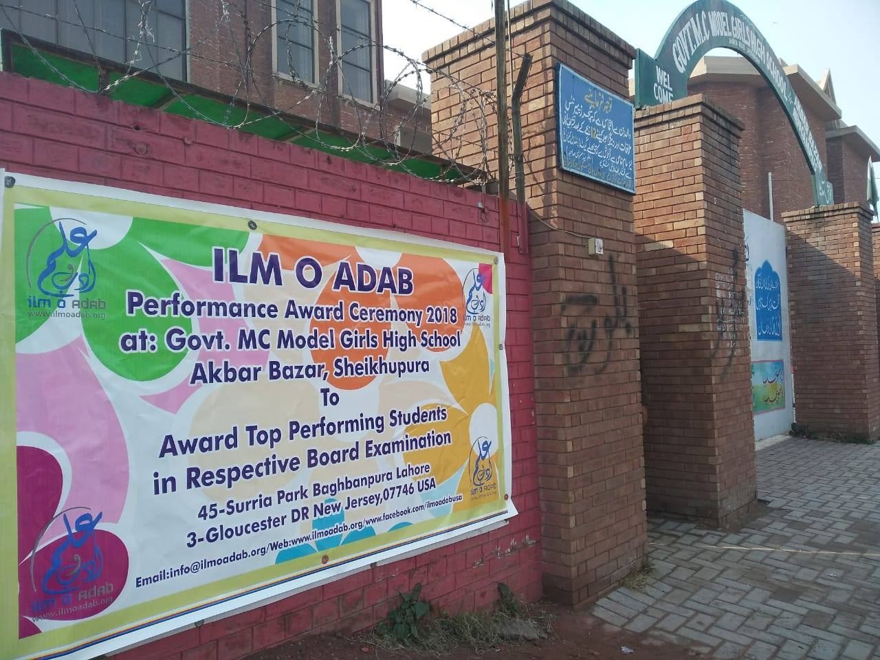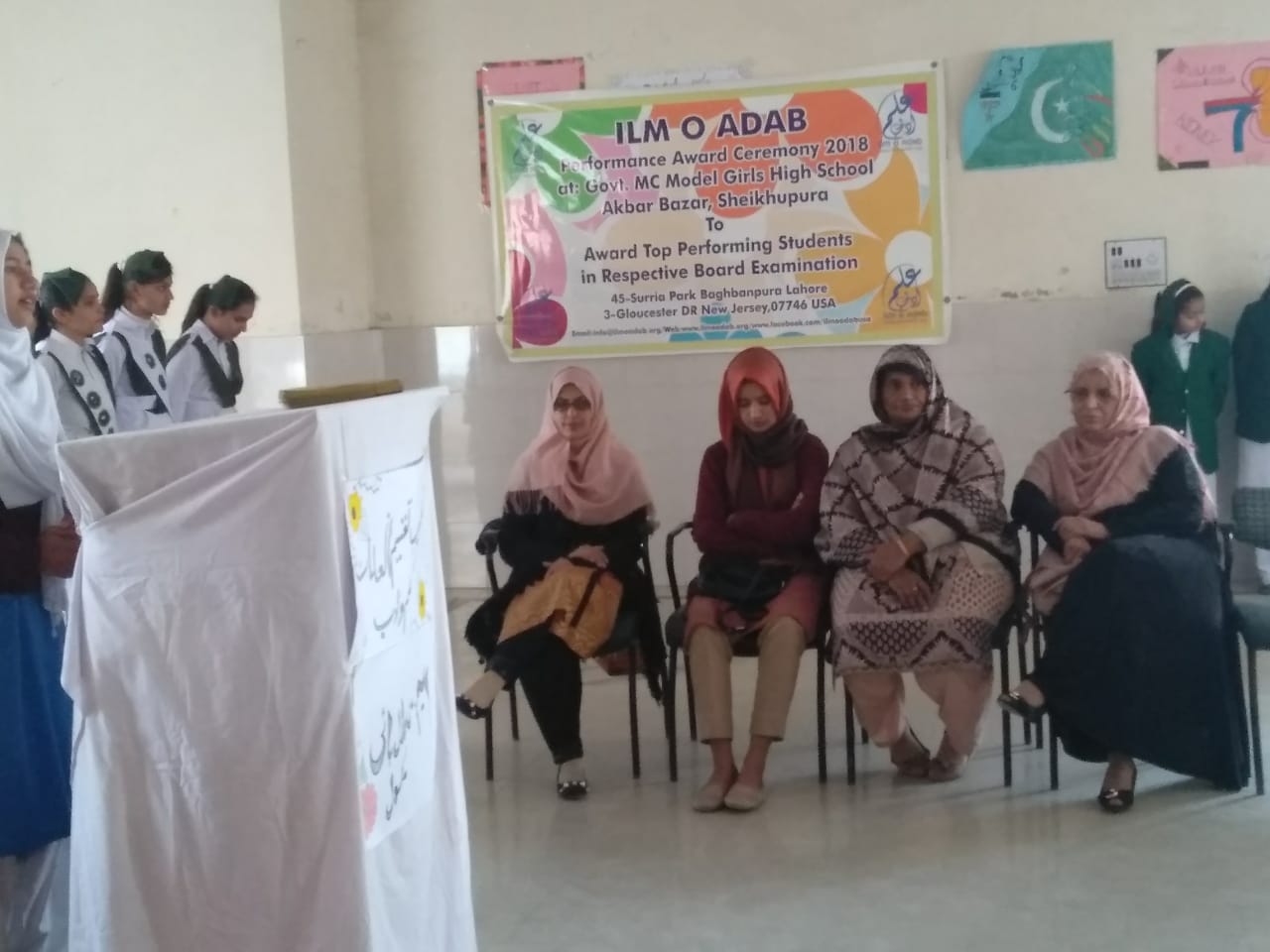 Ilm o Adab 4th Annual Performance Award ceremony 2018 held @ MC Model Girls High School, Akbar Bazar, Sheikupura. Top performing students were awarded cash prizes, certificates and laureate badges.