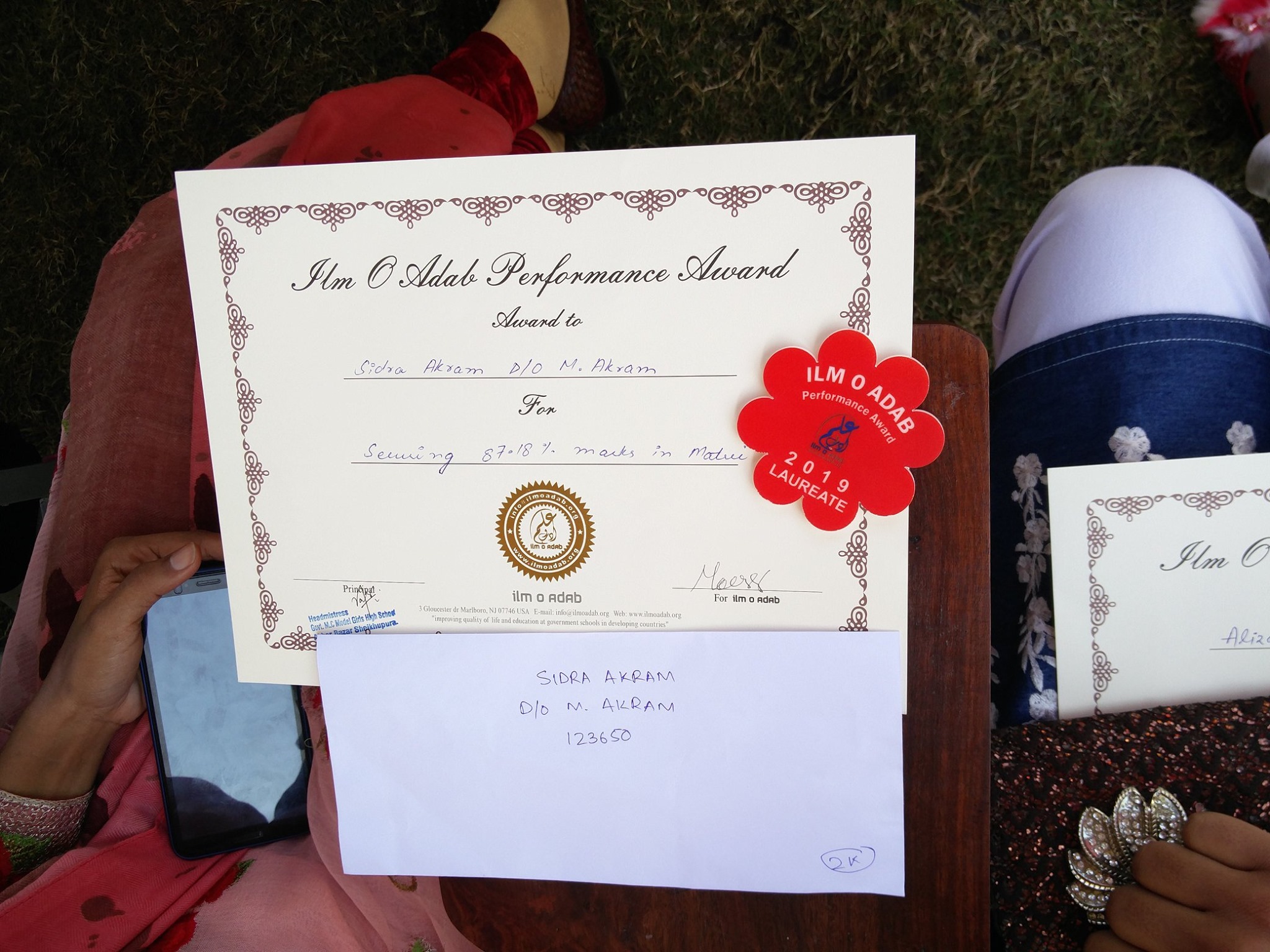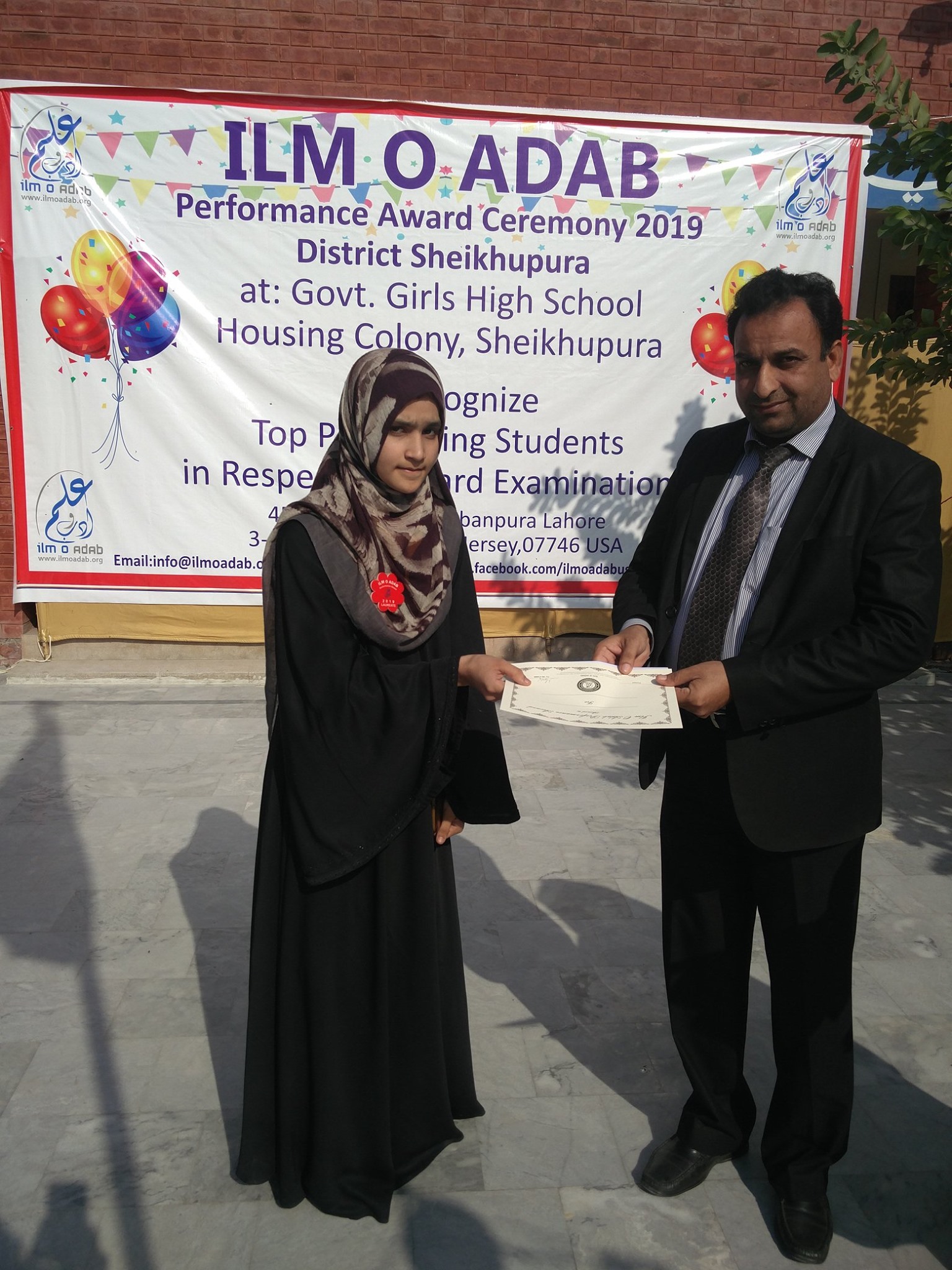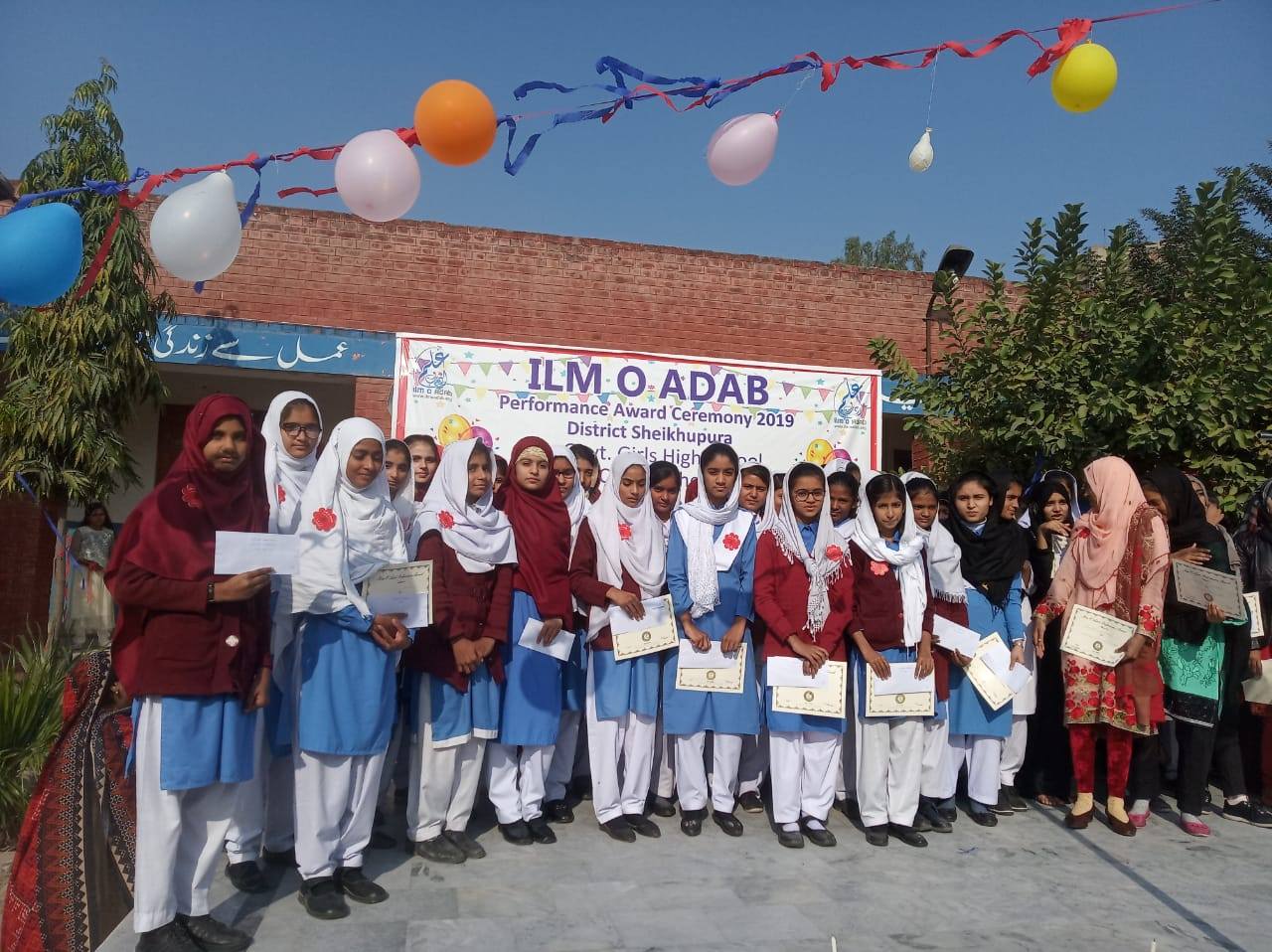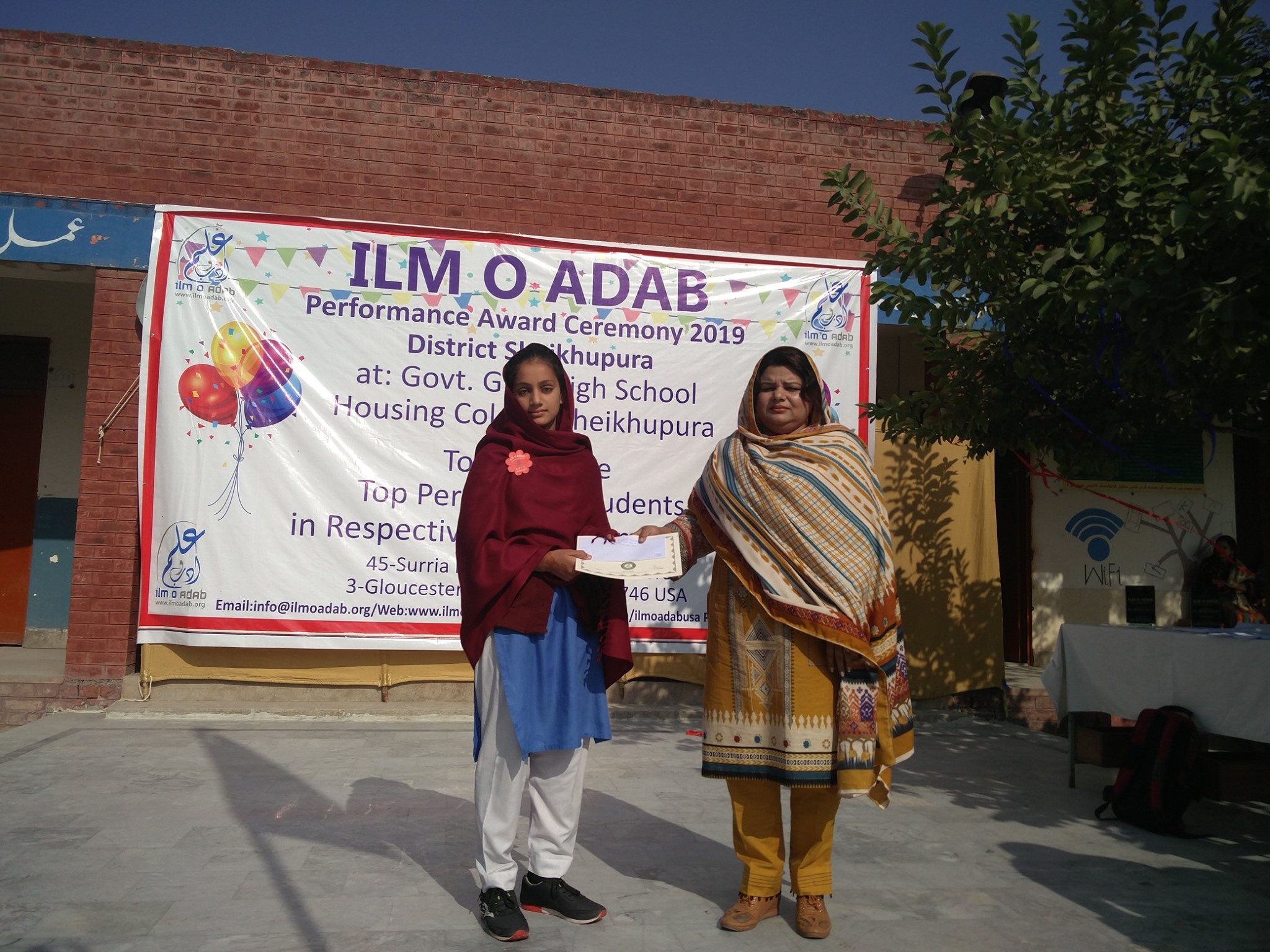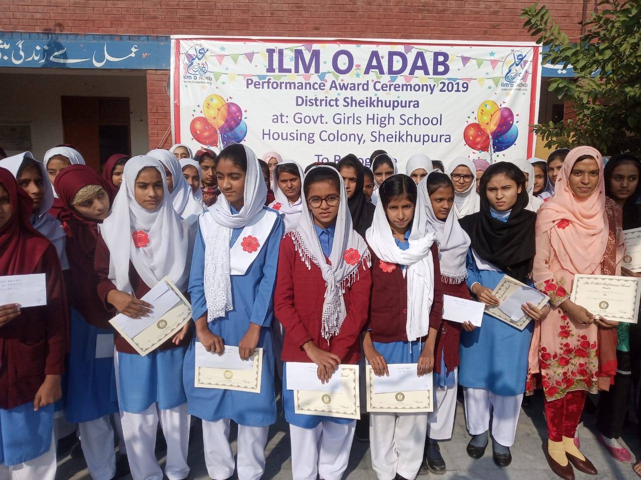 Ilm o adab 7th annual performance awards ceremony held at Govt. Girls High School Housing Colony, Sheikhupura. over 130 students were awarded through cash prize, certificate and laureate badges.